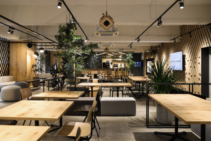 其次,以餐饮服务柜台为重点,按“放松”、“集中”、“共享”等主题划分分区。利用良好的自然光,并结合大量的生物亲性设计,材料的安排方式,创造一种被自然包围的感觉。
