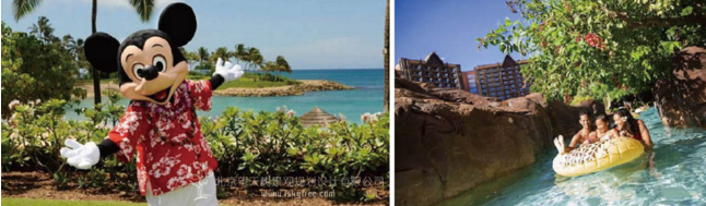 在夏威夷的欧拉尼迪士尼度假村里,孩子们可以和卡通人物们,比如米奇和米妮,一起游玩,还可以享受迪士尼儿童乐园组织的冒险活动。
